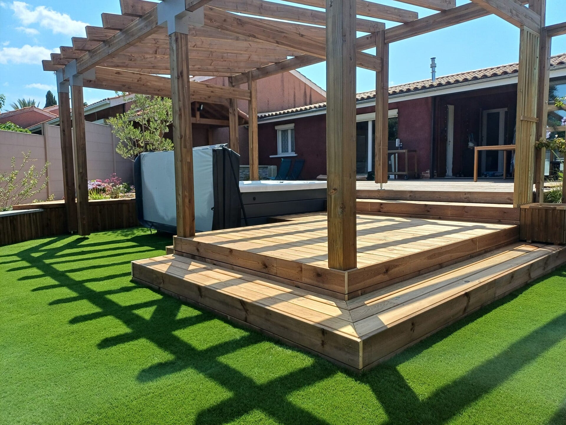 À travers ces photos, découvrez quelques-unes de nos créations en aménagement paysager et en aménagement bois : jardins sur mesure, terrasses, clôtures, structures et espaces extérieurs harmonieux.